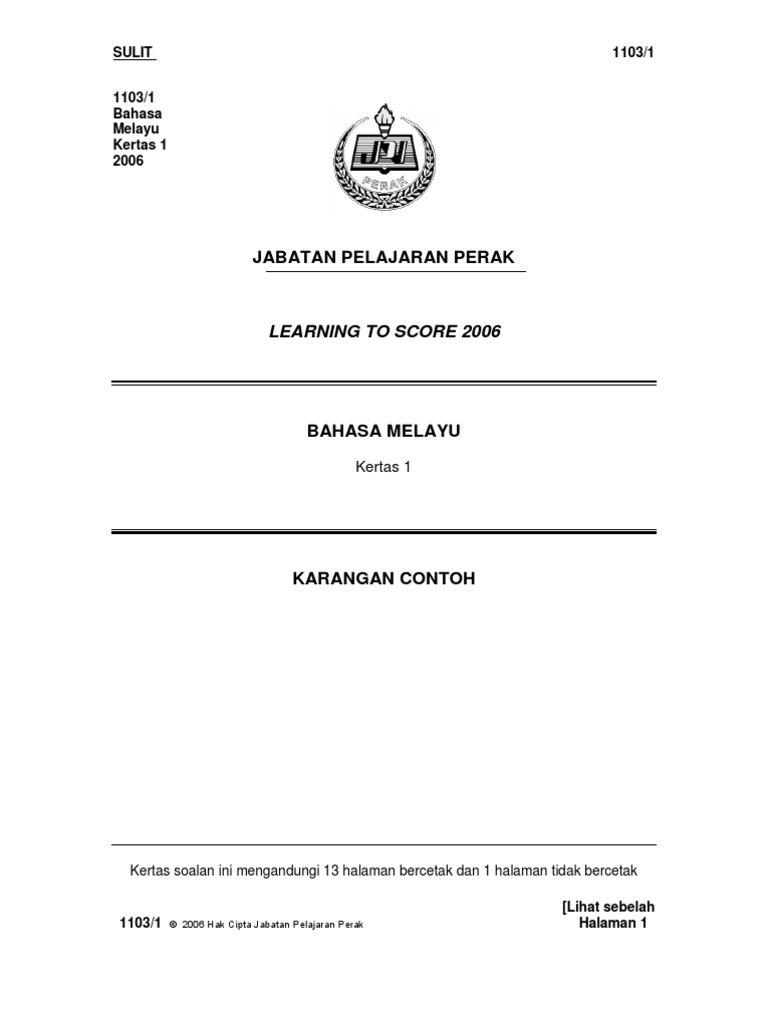 Spm Bahasa Melayu Karangan Contoh Bm Kertas 1 Pdf